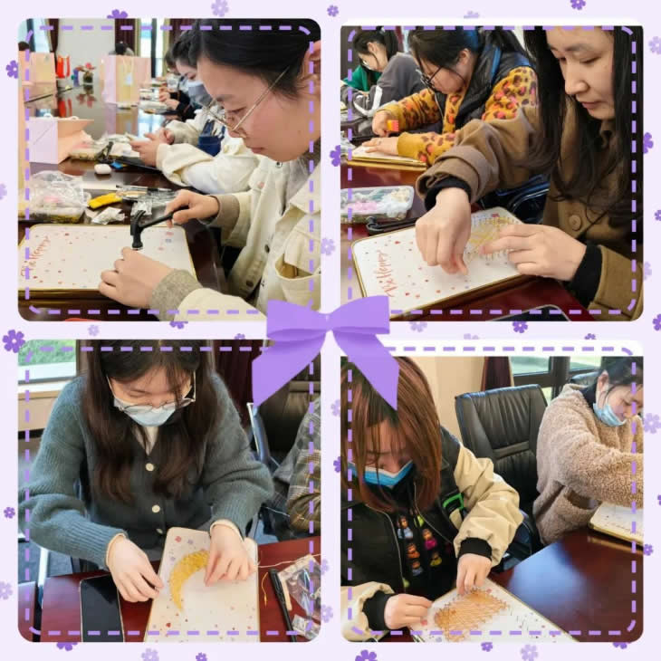 三月芳菲,灼灼韶華,在這個草木蔓發(fā),春山可望的美好時節(jié),“三八”國際勞動婦女節(jié)如期而至。值此專屬節(jié)日里,3月7日下午由工會牽頭,海陵質量管理部和人力資源部承辦的“女神節(jié)”特別活動在行政樓一樓大會議室精彩呈現(xiàn)。平日里柔肩扛重任的姑娘們,退去工服相聚在此,在QA王偉和閆紫薇的帶領下體驗了一次手工弦絲畫的制作。