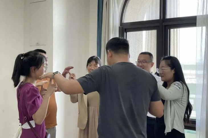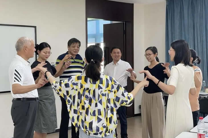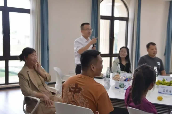 結(jié)束參觀后,家屬們跟隨工匠走入座談會現(xiàn)場,傾聽主持人介紹海陵藥業(yè)的企業(yè)文化。座談會開始,大家在“抓手指”游戲中打破拘謹、放松心情,歡聲笑語充盈著整個會議室。