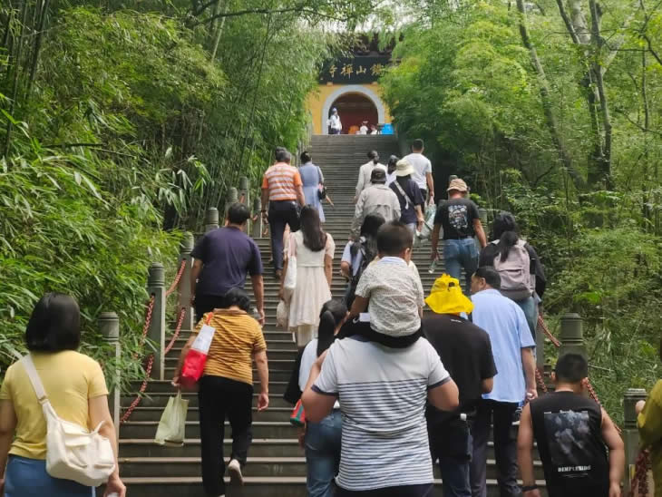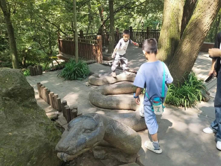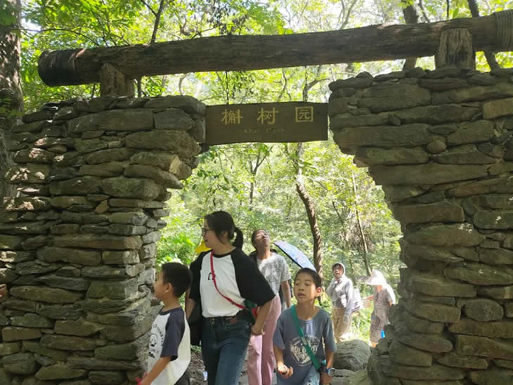 綠樹蔭濃夏日長,行程第一站是鐵山寺國家公園。在導游的講解與陪同下,工匠與家屬步行2小時穿越這處天然氧吧。途中經(jīng)過鐵山寺、孔雀園、蟒蛇澗、石鼓堆等兼具人文氣息與自然美景的林中站點,認識了“咬人樹”漆樹、金錢草等植物,在伏案工作之外獲得天然體驗。