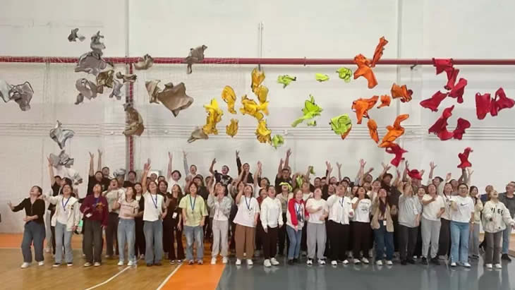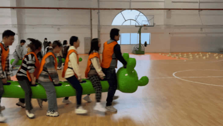 隨著響亮的口哨聲,活動正式開始!第一個項目是“毛毛蟲大比拼”,四支隊伍都領到了一只毛毛蟲作為團隊“坐騎”,看似簡單,實則不易。練習以后,大家都看出了項目的關鍵:考驗團隊協(xié)作力?!白笥易蟆薄耙欢弧备麝牳髯院爸谔柌椒ヒ恢碌乇几敖K點!