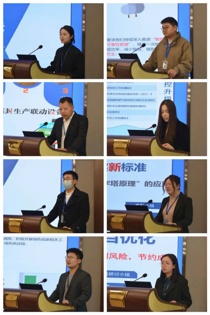 3月14日13:15,比賽正式開(kāi)始。本屆大賽共有14個(gè)團(tuán)隊(duì)參賽,涉及企業(yè)各業(yè)務(wù)模塊的創(chuàng)新應(yīng)用。《基于TRIZ理論建立孟魯司特鈉中殘留溶劑的新方法》,《亞硝酸鹽過(guò)濾條件優(yōu)化-提升一次性檢驗(yàn)合格率》、《TOC項(xiàng)目?jī)?yōu)化》三個(gè)課題重點(diǎn)介紹了新結(jié)構(gòu)化工具在質(zhì)量管理中的結(jié)合應(yīng)用;《產(chǎn)品A包衣效果改進(jìn)》、《小容量洗灌封設(shè)備精準(zhǔn)維護(hù)與效率提升》兩個(gè)課題探討如何提高產(chǎn)品生產(chǎn)環(huán)節(jié)的質(zhì)量和效率;《基于動(dòng)力中心制冷系統(tǒng)節(jié)能水泵的設(shè)計(jì)與應(yīng)用》、《提高工廠經(jīng)營(yíng)成本競(jìng)爭(zhēng)力》、《提升固體制劑產(chǎn)品排產(chǎn)效率》則在不同維度聚焦降能耗、控成本、提效率;《倉(cāng)儲(chǔ)系統(tǒng)確認(rèn)方法改進(jìn)提升》、《如何建立潔凈服重復(fù)使用考察新標(biāo)準(zhǔn)》、《精準(zhǔn)狙擊冗雜驗(yàn)證過(guò)程》在驗(yàn)證管理方面做出新探索;《基于智能物聯(lián)技術(shù)的廠區(qū)新能源車輛管理模式》、《零星工程管理模型下的供應(yīng)商管理體系》、《以戰(zhàn)促訓(xùn)——構(gòu)建全員信息安全新紀(jì)元》實(shí)現(xiàn)了“業(yè)務(wù)+信息化”的組合創(chuàng)新,聚焦當(dāng)下熱門的信息化、智能化轉(zhuǎn)型。